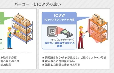 ICタグ(アイシータグ)とは、電波を受けて働く小型の電子装置の1つで、RFID(Radio frequency identification)の一種である。非接触ICカード(アイシーカード)も原理は同じである。プラスチックのカード形状のものを一般的にICカードとよぶ。ICカードには表面に金属端子のある接触型ICカードと、端子のない外部からの電波で動作する非接触型ICカードがある。